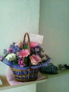 前に通ってた陶芸教室の先生からお祝いの花が届いてた。