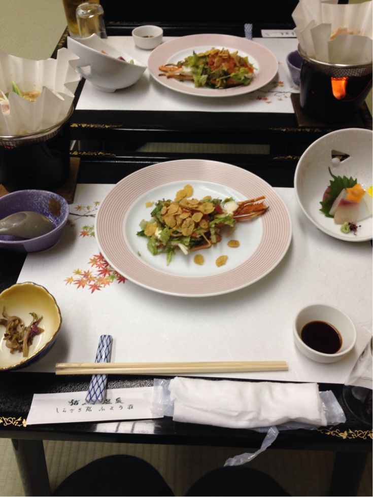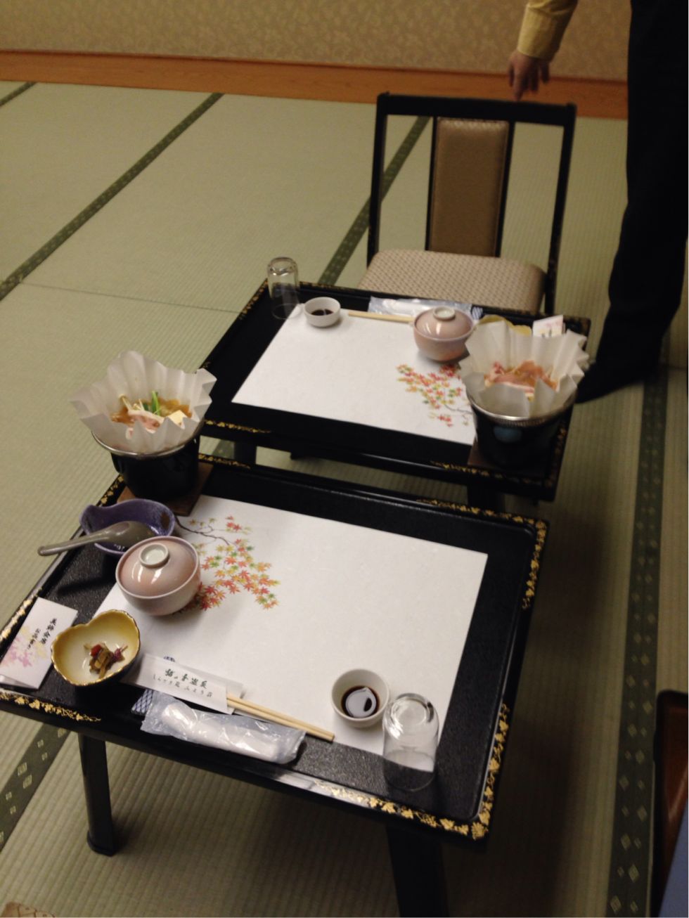 夕飯はこんなです。畳に高めのお膳。